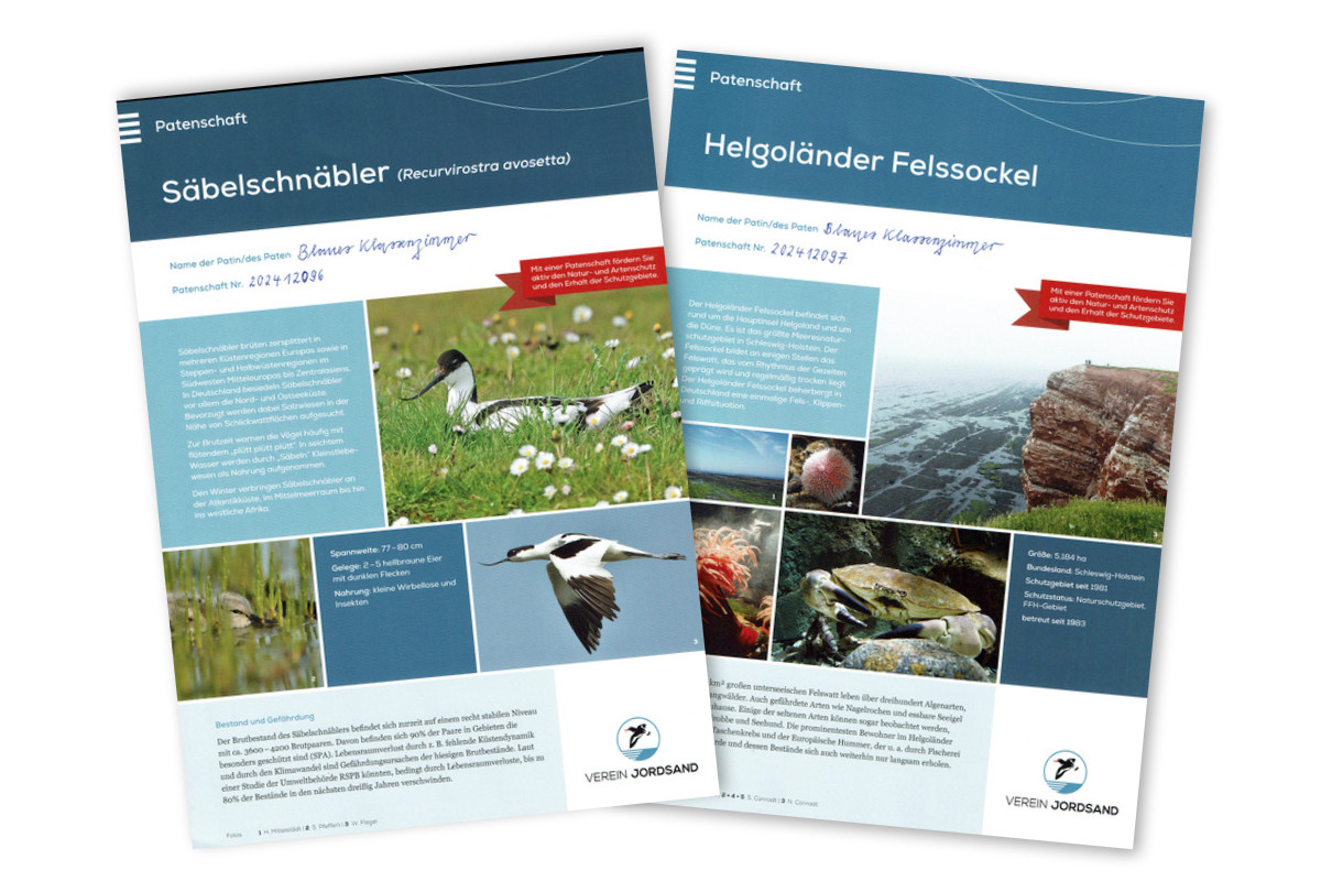 Wie seit etlichen Jahren schon hat das Blaue Klassenzimmer auch 2025 zwei neue Patenschaften beim Verein Jordsand zum Schutz der Vögel und der Natur e.V. übernommen.